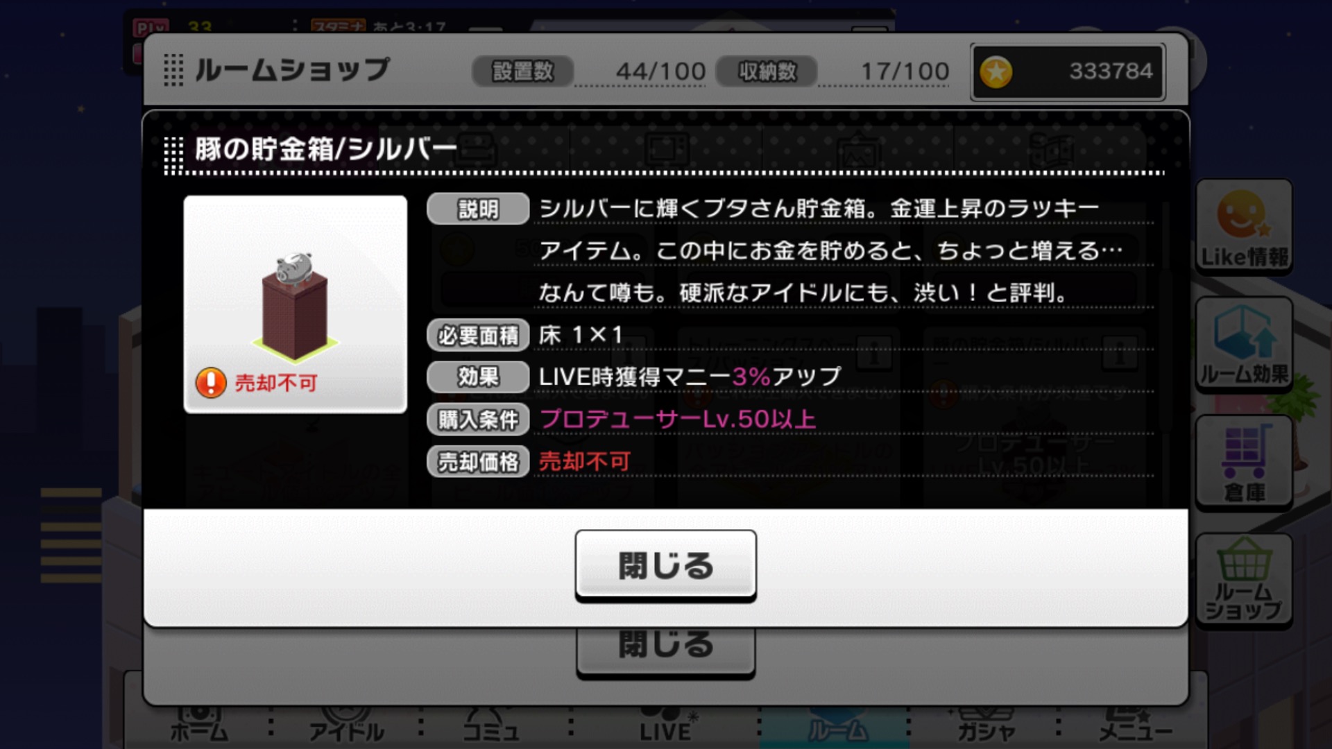 デレステのルームアイテムで 実際に部屋に設置しなくても効果が適用される Yahoo 知恵袋